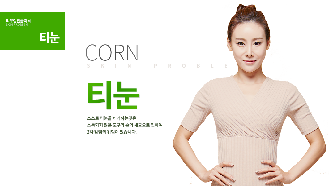 보통 티눈을 발견 하셨을 때에는 많은 사람들이 손톱깎이, 손을 이용하여 스스로 제거하려고 하시는 분들을 쉽게 볼 수 있습니다. 하지만 이러한 방법은 소독되지 않은 도구와 손의 세균으로 인하여 2차감염이 될 수 있기 때문에 피부과에서 치료 하시는 것이 좋습니다.
